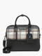This modern briefcase in tartan-print flannel is just the thing this season. Both practical and trendy, it's perfect for carrying your documents and a 14"" PC. Its neutral colour gives it a chic, timeless look. Trimmed in leather, it's a quality model, the guarantee of our leather craftsmanship.