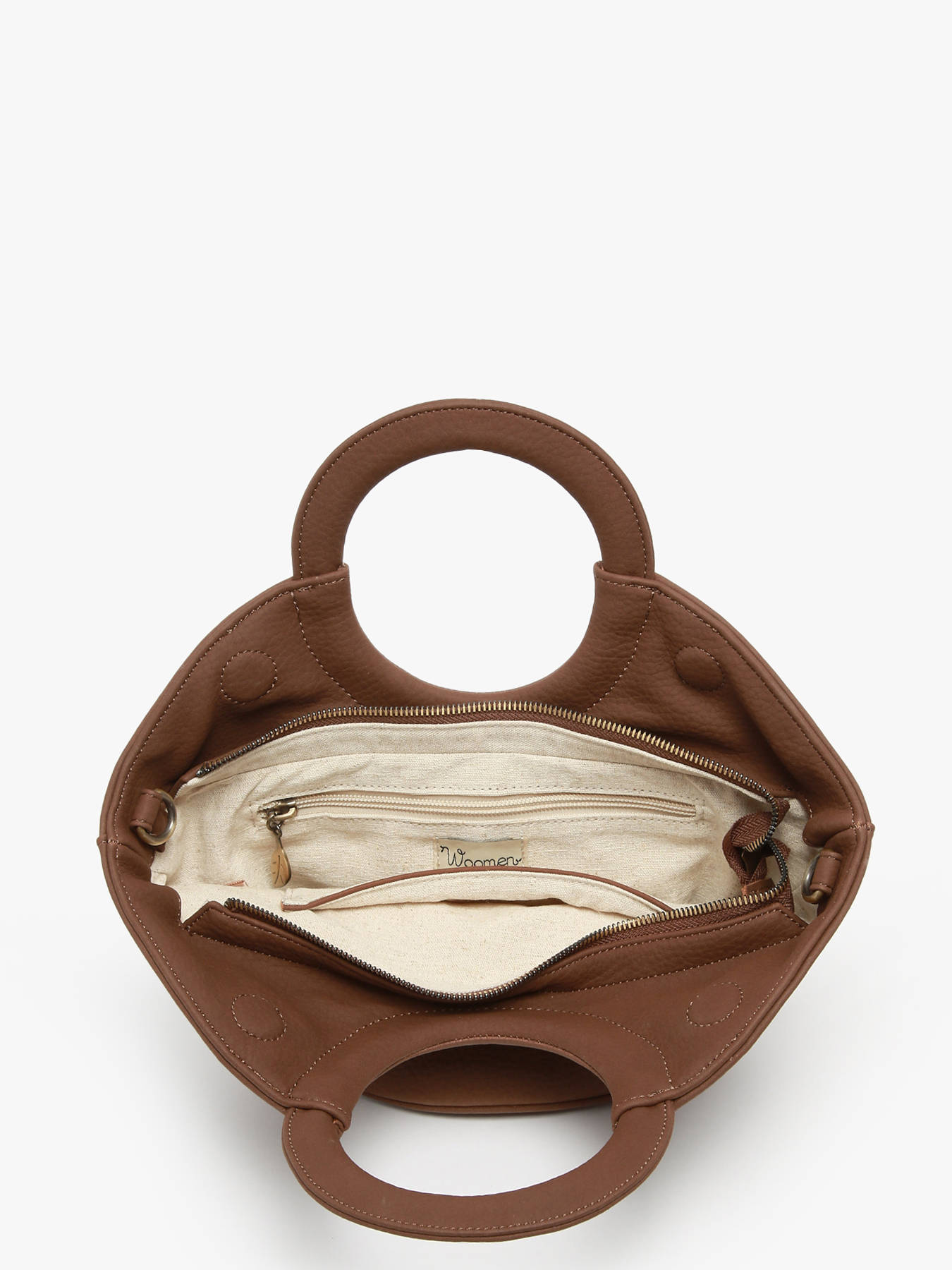 The WOOMEN crossbody bag from the NEFLIER line, in a small format with an innovative design, is made of grained polyurethane composed of 58% recycled materials with a cotton and linen lining. It closes with a zip and magnet and features an adjustable, removable strap for carrying by hand or as a crossbody. Its refined golden W resin logo adds an elegant and modern touch to this trendy and responsible accessory.
